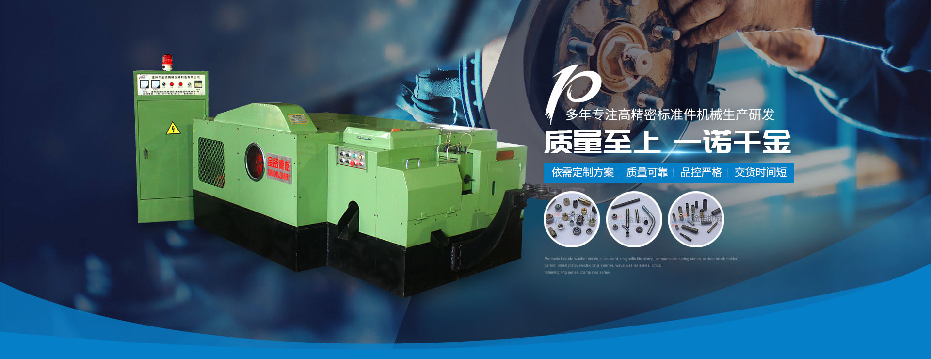溫州市金諾機械設備制造有限公司創立于2003年,公司位于溫州市濱海經濟技術開發區。是一家專業從事研發和生產高精密度緊固件設備以及多工位冷擠壓零件成型設備的專業制造商。主營產品有:冷鐓機、多工位冷鐓機。本公司秉承“質量為上,一諾千金”,的企業宗旨,不斷創新,積聚多年冷鐓機研發制造經驗......